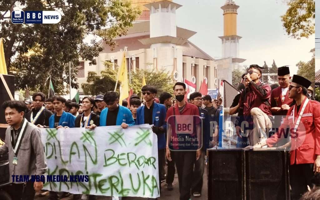 BBC MEDIA.NEWS – SUKABUMI – Ratusan massa aksi unjuk rasa berkumpul di Lapang Merdeka Kota Sukabumi pada Senin (1/09/2025). Massa aksi ini terdiri dari berbagai elemen, mulai dari organisasi mahasiswa ekstra kampus Cipayung Plus (GMNI, HMI, PMII, KAMMI, IMM, IPNU, HIMASI), hingga komunitas ojek online (ojol) dan masyarakat umum yang hadir tanpa membawa bendera maupun identitas seragam.