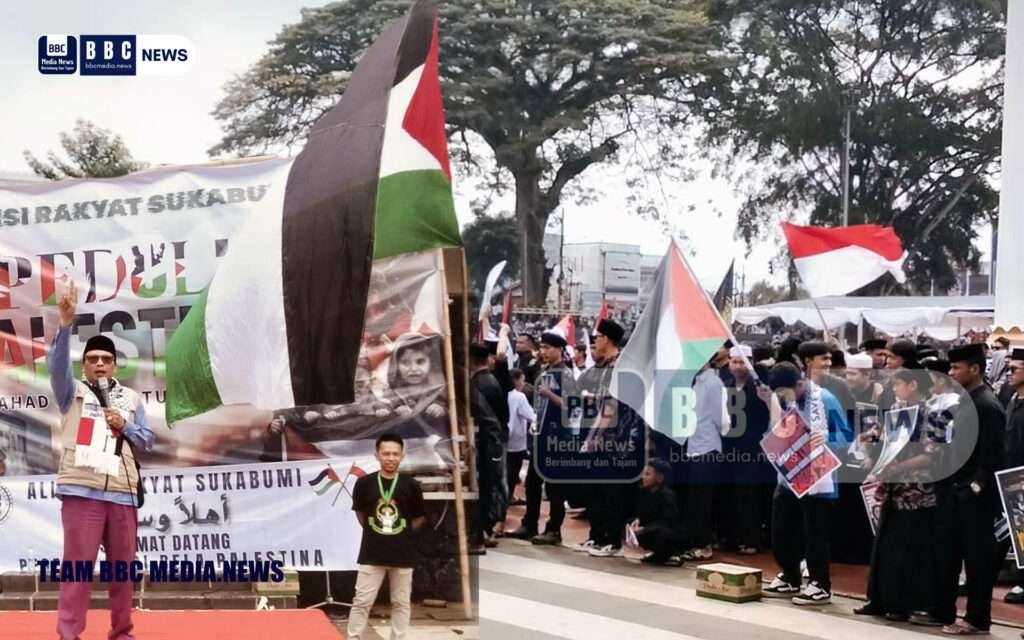 BBC MEDIA.NEWS -SUKABUMI – Aksi solidaritas Palestina digelar di lapang merdeka Kota Sukabumi pada Minggu (31/9/2025). Ratusan massa dari Aliansi rakyat Sukabumi yang tergabung berbagai elemen masyarakat , tokoh agama, alim ulama, santri, serta organisasi masyarakat berkumpul untuk menggalang dana kemanusiaan serta menyerukan penghentian konflik yang masih berlangsung di Palestina.
